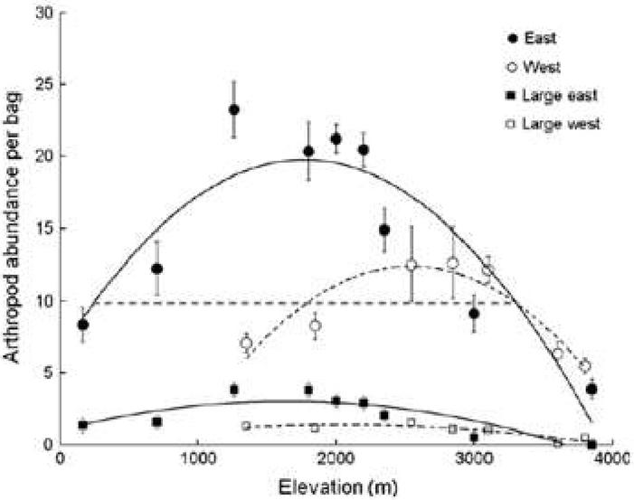 Figure 6 Arthropod abundance in East and West Himalayas based on bagging (Ghosh-Harihar et al 2014).