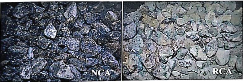 Natural aggregates used for manufacturing NAC are obtained by crushing the naturally available rocks to the required size, and they are obtained at all standard sizes. The natural and recycled aggregates have much difference in properties, which are discussed later. Photographic views of the aggregates are shown in Figure 1.